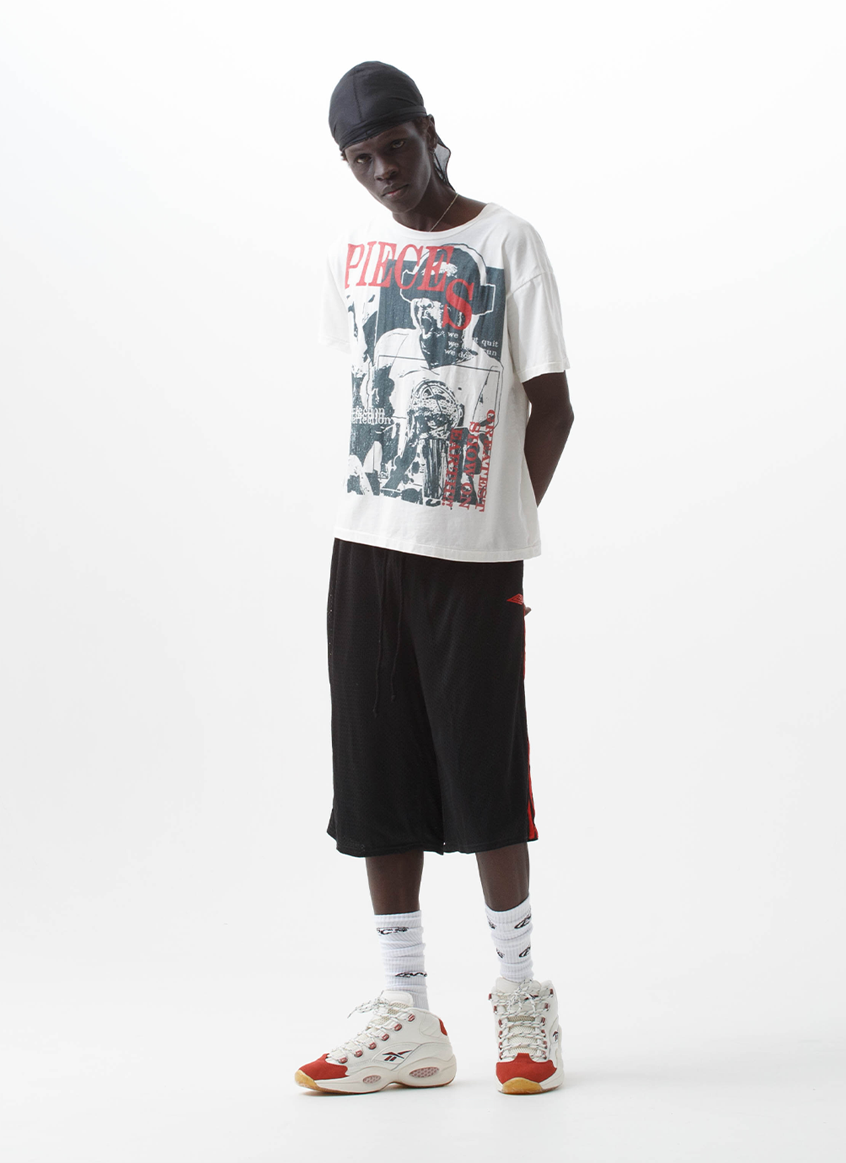 Pieces Elongated Mesh Shorts Black Red